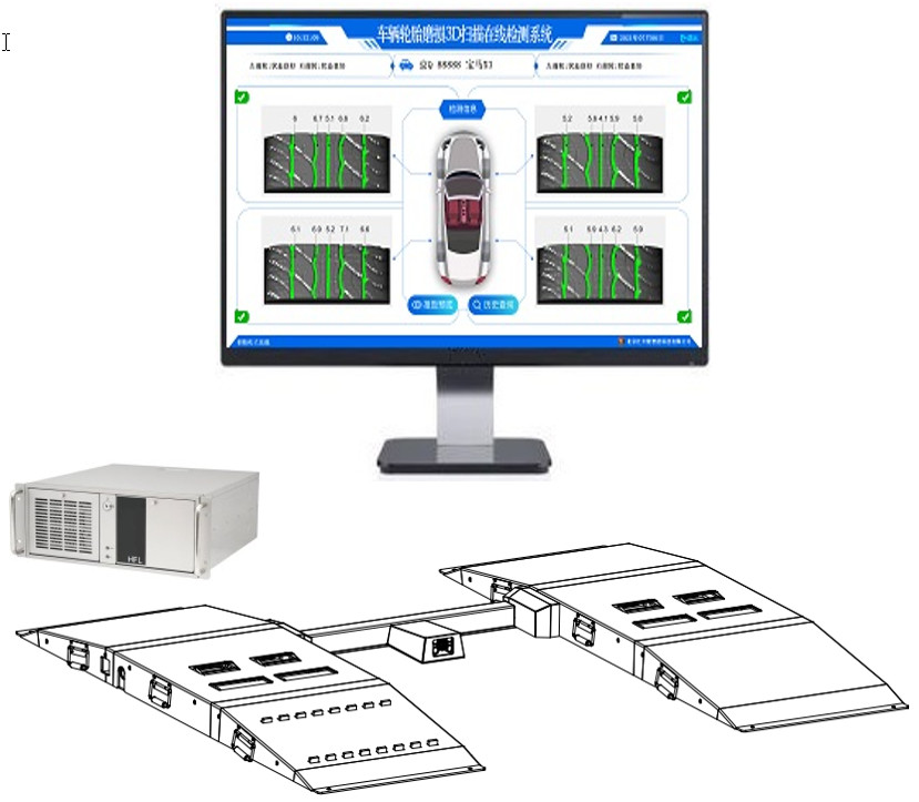 本系統(tǒng)是由北京匯豐隆智能科技有限公司開發(fā)并擁有自主知識產(chǎn)權(quán)的一款全自動化乘用車輪胎磨損3D掃描在線檢測系統(tǒng)。車主/司機(jī)僅需駕駛車輛從檢測系統(tǒng)駛過,檢測系統(tǒng)即可快速、準(zhǔn)確的檢測出車輛輪胎的磨損狀態(tài)并可在顯示屏或及智能電視上顯示出本次檢測結(jié)果。檢測報告具有精度高、速度快、顯示界面信息齊全等特色。同時,檢測報告記錄了被檢測車輛的車牌及車型信息,便于日后方便準(zhǔn)確查詢及對比。